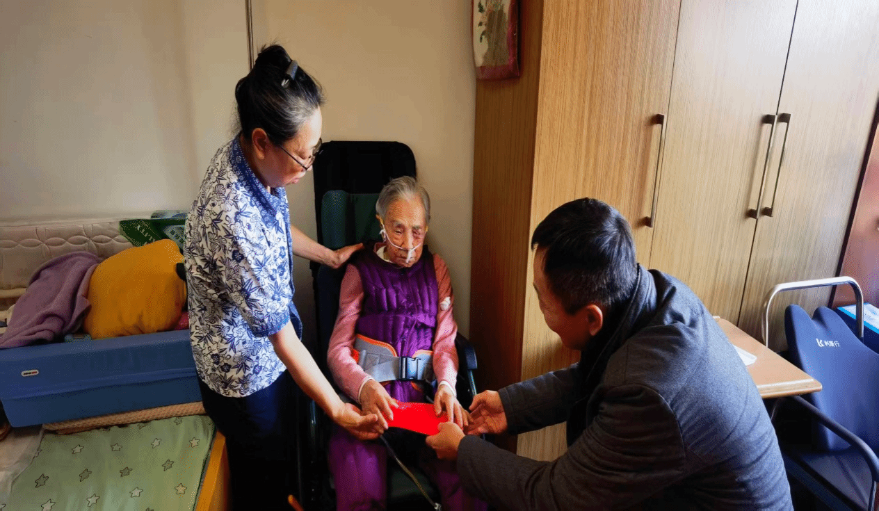 慰问组一行深入走访,与老同志们促膝交谈,关切询问他们的身体状况和生活需求,并向他们介绍了学校近年来在人才培养、学科建设、社会服务等方面取得的新进展。在老东大彭雪梅老师家中,她欣然与慰问组共话家常,现场洋溢着温馨愉悦的氛围。面对因病卧床仍坚持睁眼致谢的老东大石雅贞老师,慰问组细致了解其实际困难,并叮嘱她保重身体、安享晚年。